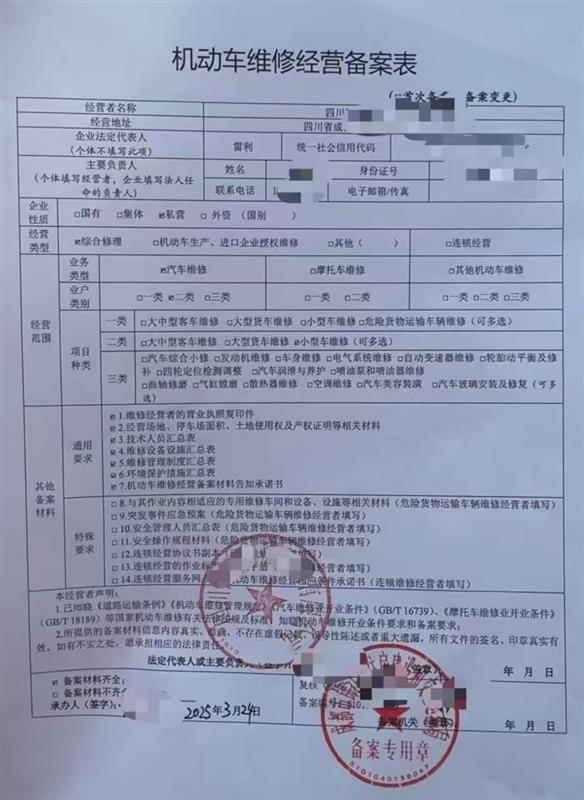 四川机动车维修企业备案流程申请经营许可证范围